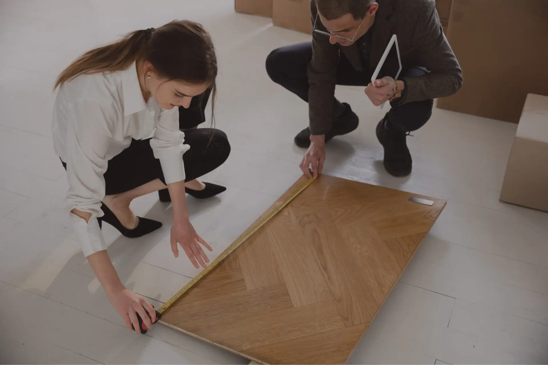 We offer a range of hardwood species (oak, walnut, maple, etc.) and finishes (matte, semi-gloss, high-gloss) and provide options for plank width, patterns, and textures. Our team uses advanced tools for precise installation and a clean finish.